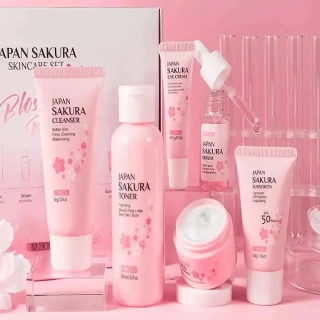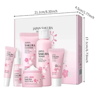 Indulge in radiant self-care with the Cherry Blossom Skincare Set, a luxurious 6-piece facial care collection designed to hydrate, brighten, and revitalize your skin. Infused with the delicate essence of cherry blossom extract, this complete skincare kit includes everything you need for a daily routine — from cleanser and toner to moisturizer and serum. Perfect for all skin types, it helps improve skin texture, reduce dullness, and leave your complexion feeling soft, smooth, and glowing. Ideal as a gift set or a personal skincare upgrade!